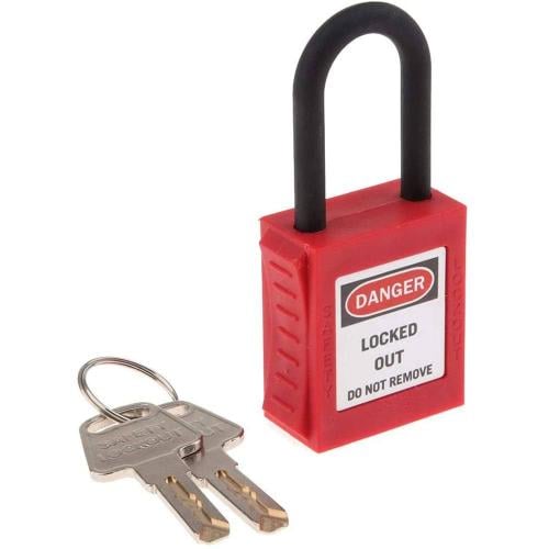 - قفل أمان صناعي يُعرف بـ قفل الإغلاق والتعليق (Lockout Tagout)، وهو مصمم خصيصًا للاستخدام في المعدات الكهربائية. يتميز هذا القفل بمواصفاته المحددة التي تضمن الأمان والمتانة.